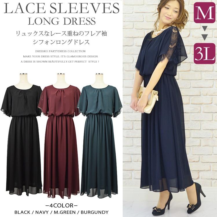 ロングドレス パーティードレス 結婚式 ドレス 大きいサイズ ドレス 送料無料 半袖 Luxeなレース重ねのフレア袖 シフォンロングドレス 4サイズ M L Ll 3l 結婚式 パーティードレス通販 Dress K O 通販 Yahoo ショッピング